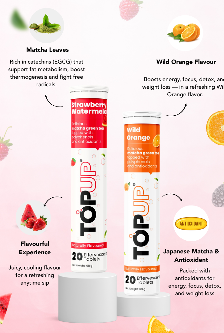 Due to the effervescent nature of the product, TopUp green tea hashigher bioavailabilityof antioxidants. This means that your body will be